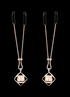Details: • Rubber-tipped clamps for secure, comfortable wear • Adjustable tension for personalized sensation • Faux pearl accents for visual allure and erotic movement • Elegant rose gold finish for a luxurious aesthetic