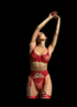 • Four-Piece Ensemble: Includes embroidered bra, panty, garter belt, and matching chain accessories.